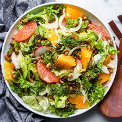 Take advantage of the last of the winter citrus at the store and make this simple citrus and fennel salad. Fennel isn’t something I usually pick up in the grocery store, but I received some in my recent Imperfect Produce box so I was curious to test it out in this salad recipe.