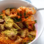 Although it isn’t typical to put cooked spinach in a burrito – I think it works! I have added spinach to other sweet potato dishes in the past and love the combo. The avocado crema sounds fancy, but it is basically a creamy guacamole made with some yogurt. If you’d rather make a vegan burrito, simply add the avocado alone rather than making the avocado crema.