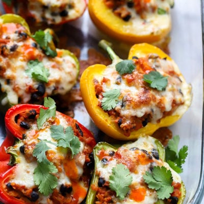 I made a half-recipe since there are only two of us and I knew we’d only eat a half pepper since I was serving with a big salad — WOW, these are delicious!! I used white rice since that’s what was in the fridge and adobo sauce from a can of chipotle peppers as I was out of tomato sauce. Otherwise, as written — and making it again this week, but the full recipe! Have been eating vegan for a year but just dipping my toe into soy and wheat proteins since I’ve always loved beans, but not getting enough protein when I kept count for a few weeks. This was EASY and delicious. Thanks so much, and heading off to see your other recipes just because this first one was such a hit! 🙂